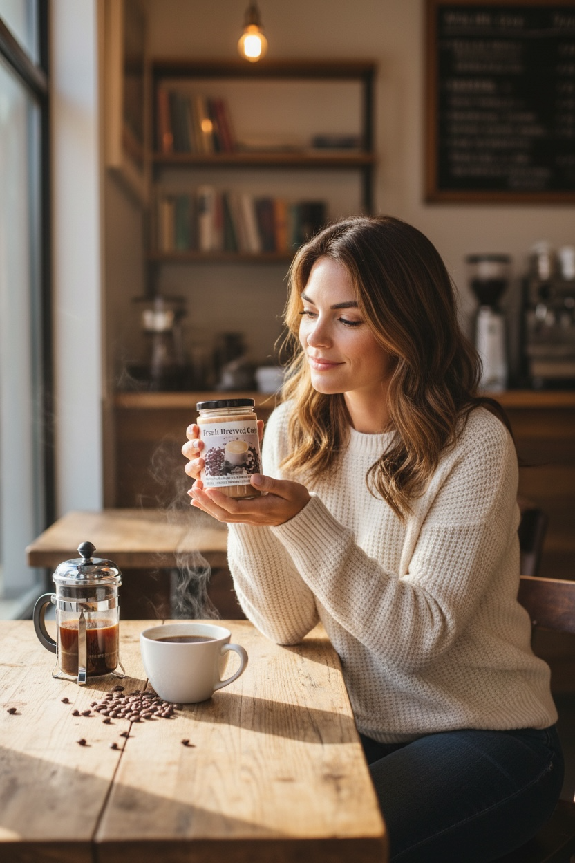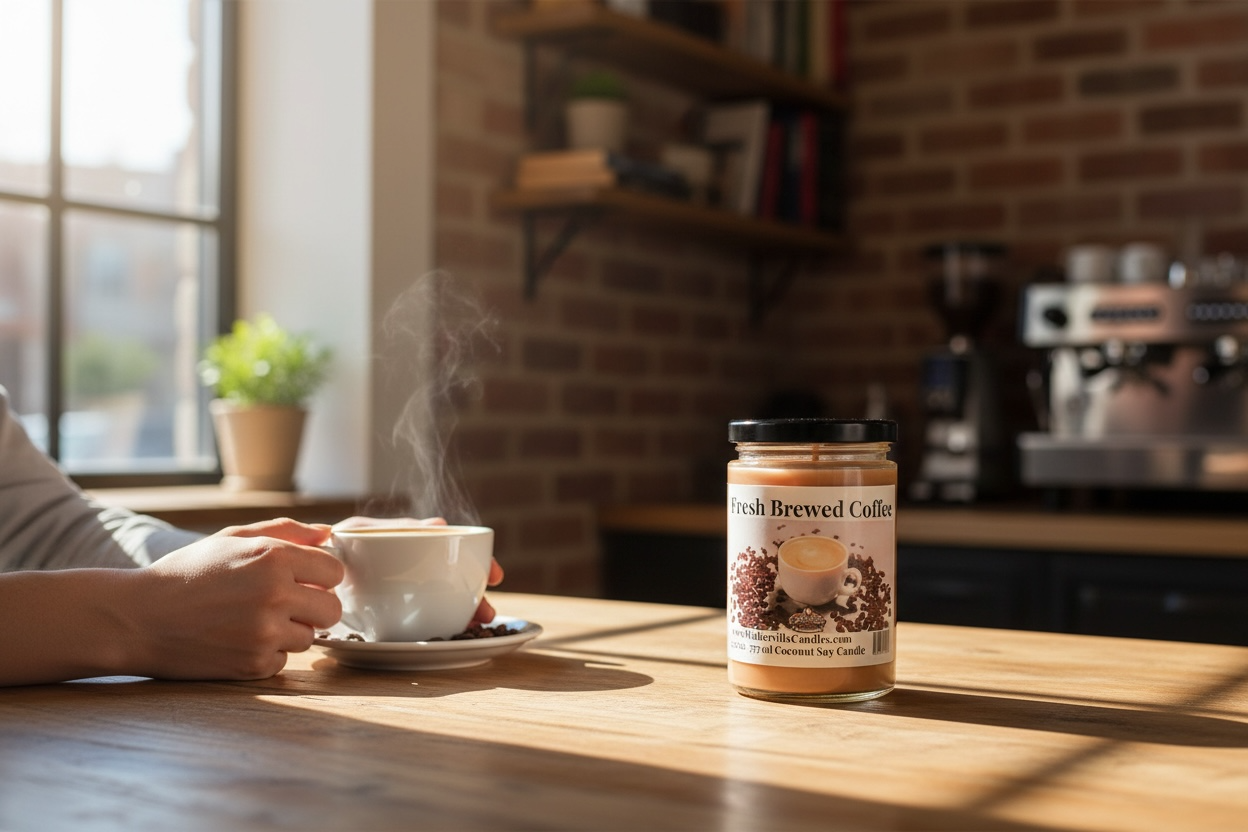 Fresh Brewed Coffee Coconut Soy 12 oz/ 355 ml Candle Hand-poured, Eco-friendly, Clean Burning Wood Wick